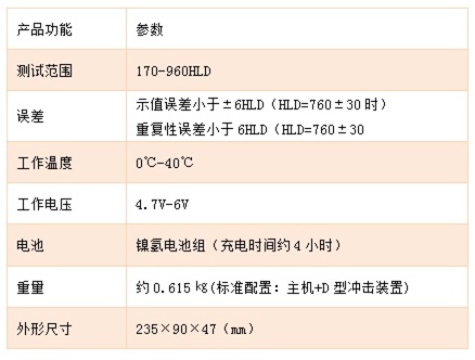 基本配置:主機(jī)(含打印機(jī))1臺、D型沖擊裝置1支、小支撐環(huán)1只、尼龍刷1只、高值標(biāo)準(zhǔn)里氏硬度塊1塊、充電器1只、打印紙1卷。 可選附件:7種不同的沖擊裝置、各種異型支承環(huán)
