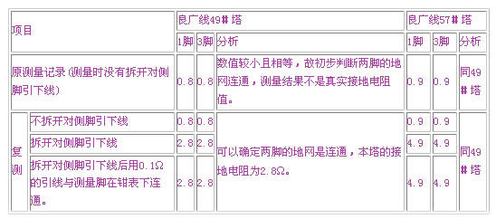 由于線(xiàn)路建設(shè)時(shí)間不同有些是采用放射式地網(wǎng)各腳地網(wǎng)之間連通有的是采用環(huán)形兼放射式地網(wǎng)各腳地網(wǎng)是連通的當(dāng)待測(cè)桿塔在測(cè)量時(shí)僅有一條接地引下線(xiàn)時(shí)其測(cè)量結(jié)果總是比實(shí)際略大一些因?yàn)槭?2)是忽略了若干因素如不忽略RX總比表頭顯示值略低一些。如各腳的地網(wǎng)不連通表頭顯示值僅是一只腳地網(wǎng)的接地電阻值實(shí)際運(yùn)行時(shí)的地網(wǎng)要大一至三倍(此時(shí)準(zhǔn)確的方法是將其余腳接地引下線(xiàn)拆開(kāi)后用臨時(shí)線(xiàn)與測(cè)量腳的引下線(xiàn)在鉗表之下連通)所以測(cè)量結(jié)果是偏于安全的。因此只要任一只腳的接地電阻都不大于設(shè)計(jì)值(例如10Ω)則認(rèn)為該基桿塔的接地電阻是合格的沒(méi)有必要追究各腳的接地電阻值是否平衡。