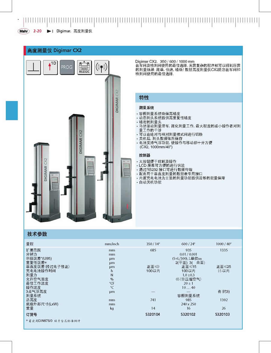 Digimar CX2數(shù)顯高度儀是在車間及檢測(cè)間使用的最佳選擇,測(cè)高儀使用,無需復(fù)雜的程序就可以得到所需的測(cè)量結(jié)果;簡(jiǎn)單,蘇州測(cè)高儀價(jià)格,快速,測(cè)高儀工作原理,精確!數(shù)顯高度測(cè)量?jī)xCX2是您在車間和檢測(cè)間使用的最佳選擇。